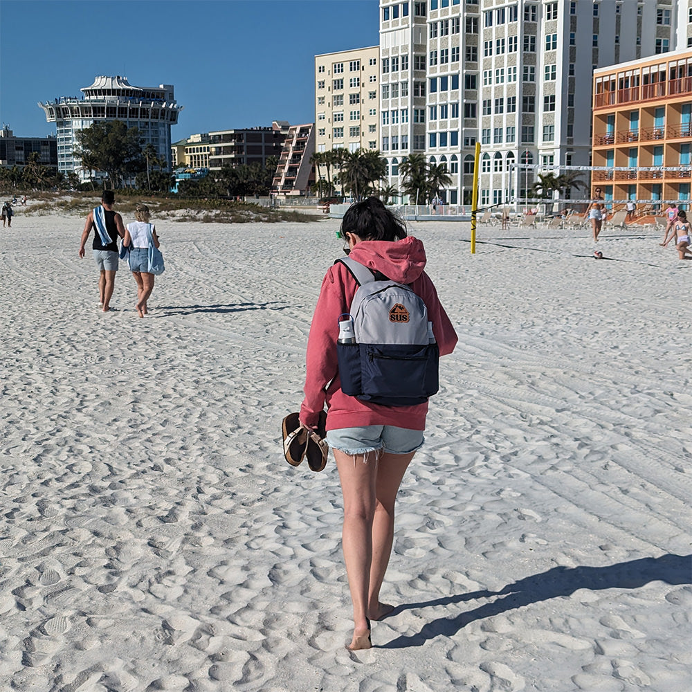 The all-purpose backpack, whether you’re going to work, to class, or just taking a quick trip to the coffee shop to check your emails, has your back. :) This backpack removes 19 plastic bottles from floating in the ocean.